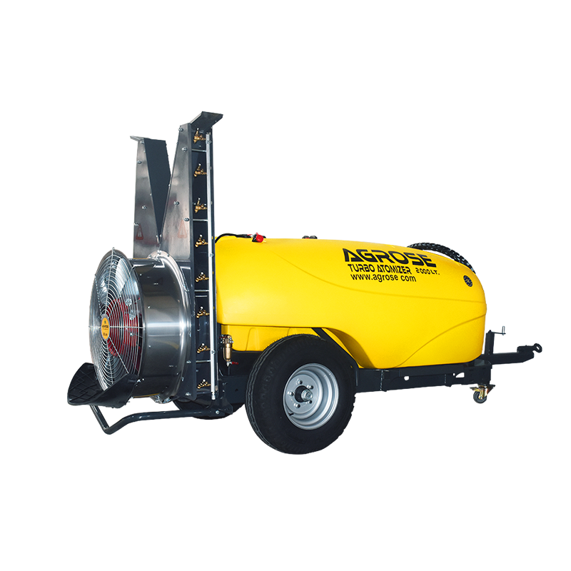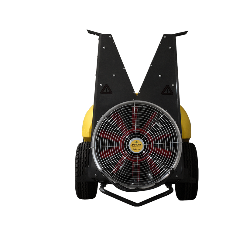 - المراوح ذات التصميم العالي من نوع "V" بقطر 90 سم مزودة بفوهات نحاسية مع قاطع للقطرات لضمان رش فعال ودقيق